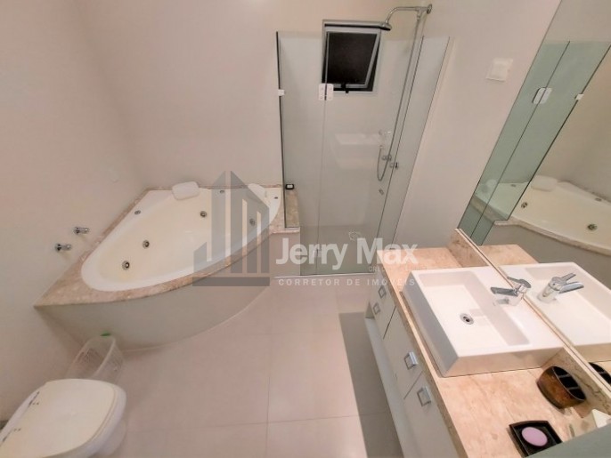 Dormitório 01: Suíte máster com 01 cama de casal, ar condicionado e hidromassagem.